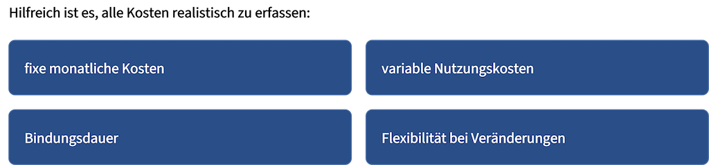 Hilfreich ist es, alle Kosten realistisch zu erfassen: