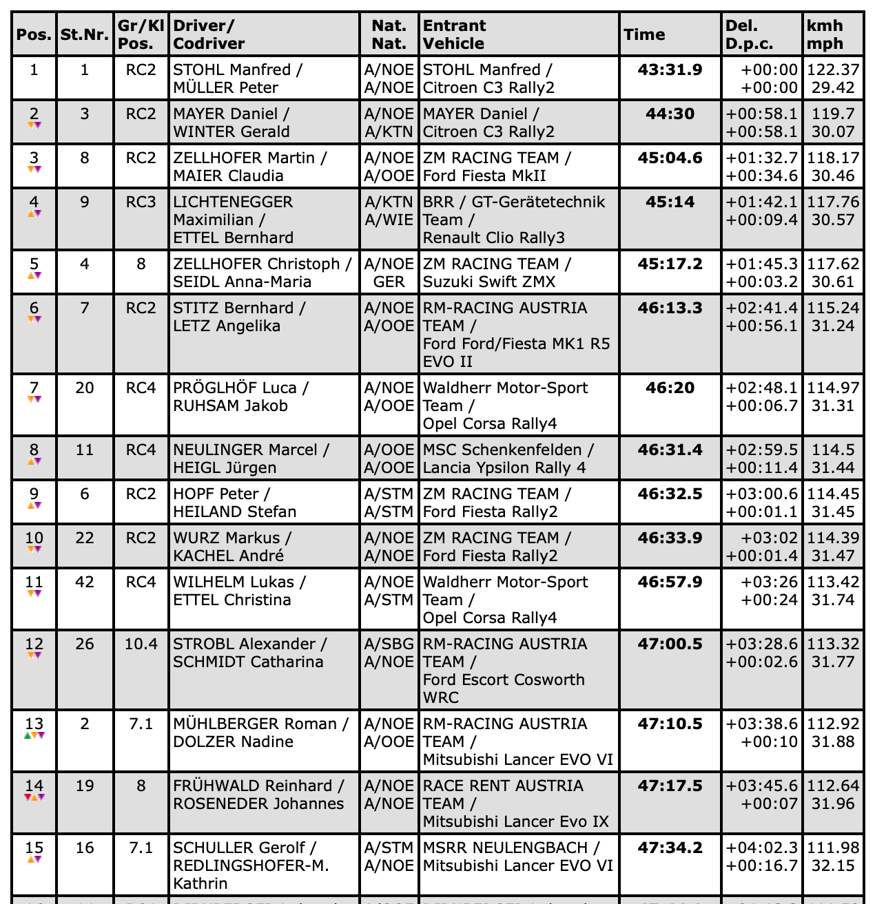 Daniel Mayer und Gerald Winter, die ebenfalls einen Citroen C3 Rally2 pilotierten, belegten in sämtlichen Sonderprüfungen jeweils hinter Stohl/Müller den zweiten Platz. Mayer erklärte: „Natürlich wäre ich lieber Erster geworden, aber vielleicht gelingt uns das ja dann im nächsten Jahr. Ich bin ja noch jung. Diese Rallye war jedenfalls sehr schwierig - auf den schnellen Prüfungen war kein Platz für Fehler.“