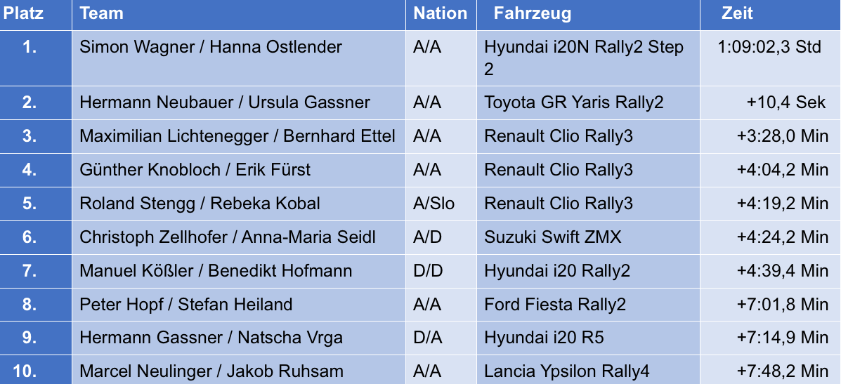 Bei der LASERHERO Lavanttal-Rallye powered by Dohr – Wolfsberg / SG TOOLBOX in Wolfsberg sind viele Toppiloten, u.a. Michael Lengauer, nicht mehr dabei / Es führt Simon Wagner knapp vor Hermann Neubauer / Kärntner Talent Maximilian Lichtenegger auf Gesamtrang drei